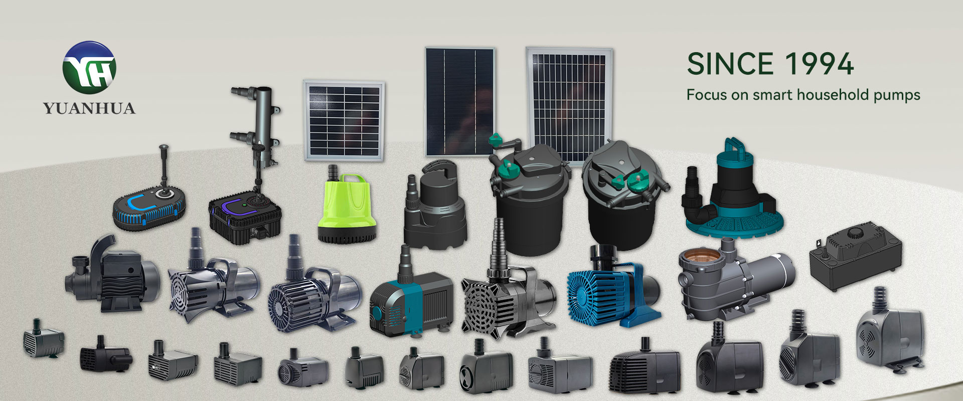 Kuid praegu on tütarettevõte – YUANHUA tegeleb peamiselt energiatõhusate vahelduvvoolu sukelpumpade, päikeseenergia alalisvoolu veepumba, harjadeta alalisvoolu sukelpumba jne uurimise ja arendamise, tootmise ja müügiga. Meie tooteid kasutatakse laialdaselt käsitöölistes purskkaevudes, aiamaastikes, aia niisutamisel, autodes, automaatse veeringluse seadmetes, päikeseenergiatoodetes, jahedate vannikalade purskkaevude seadmetes. Lisaks lisame uusi tooteid, nagu pesumasina äravoolupump ja veepuhasti jaoks mõeldud RO-pump.